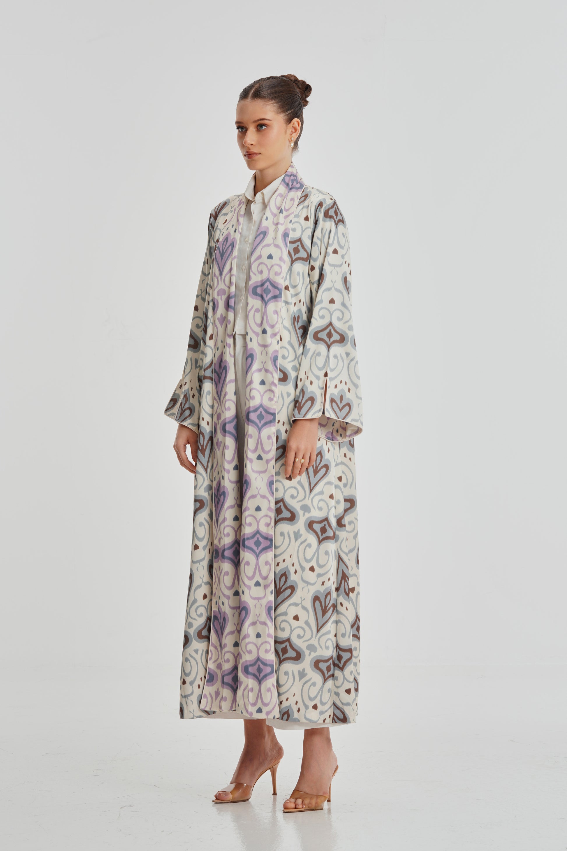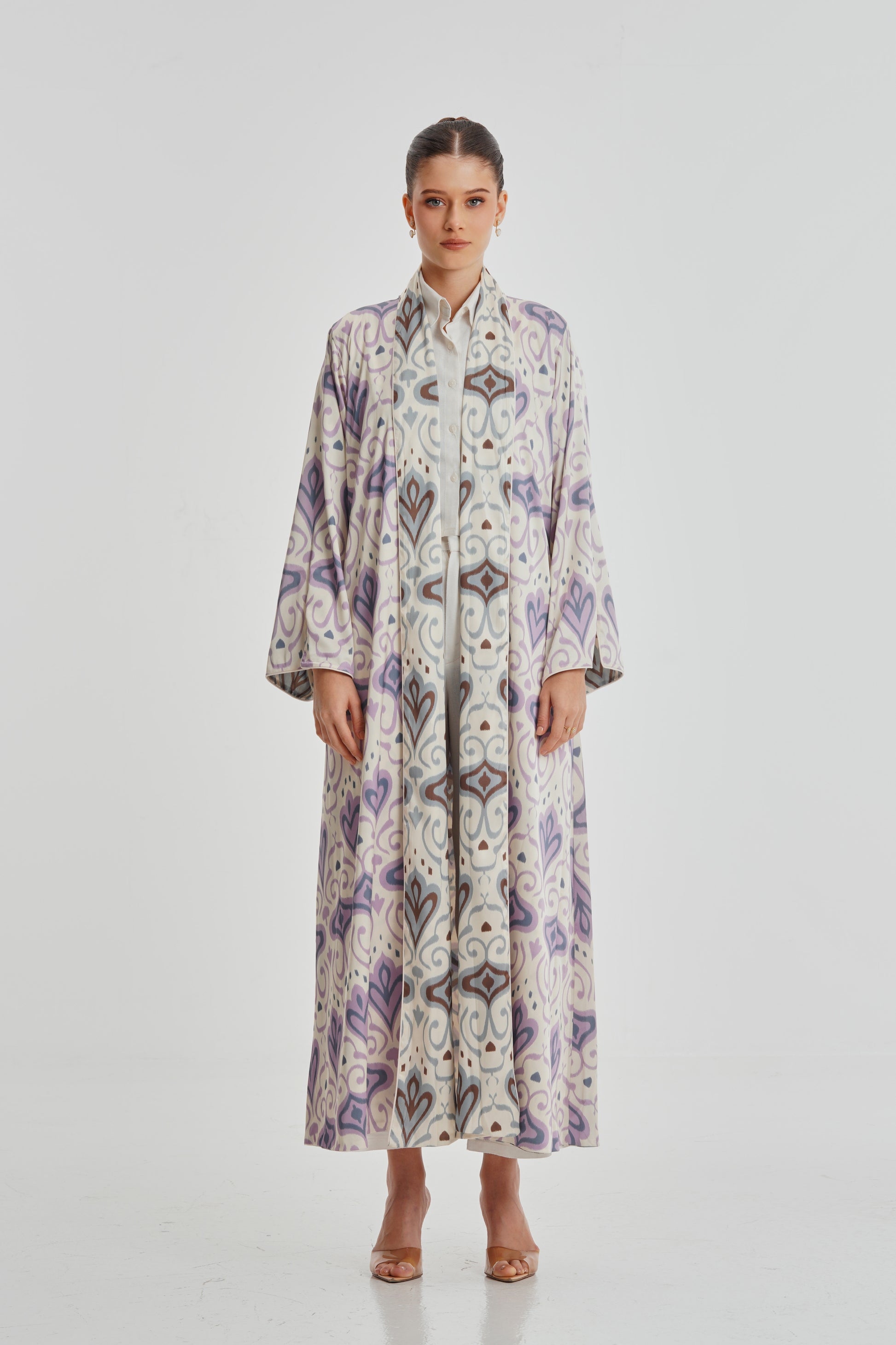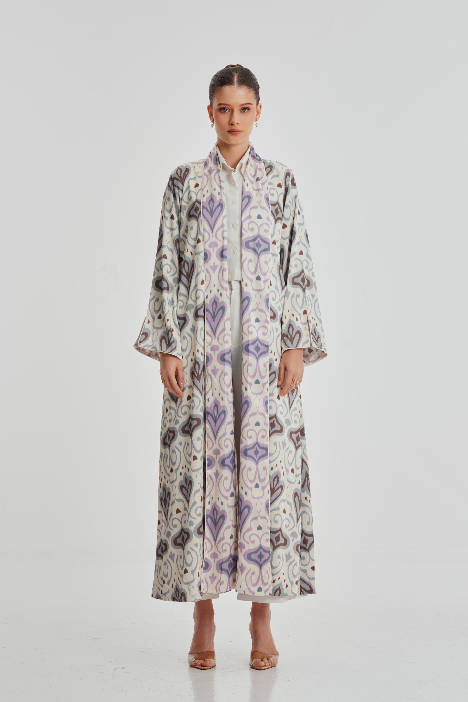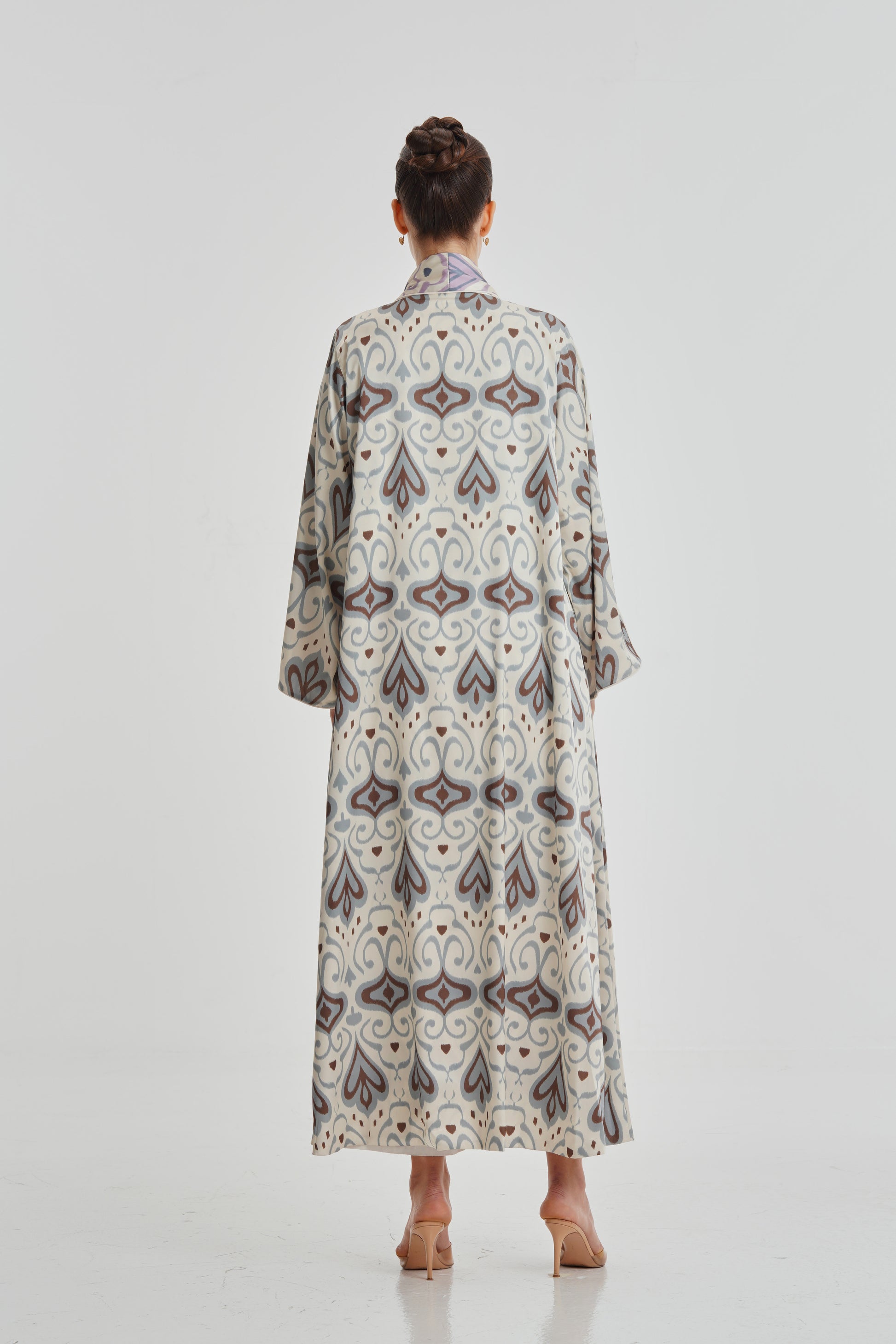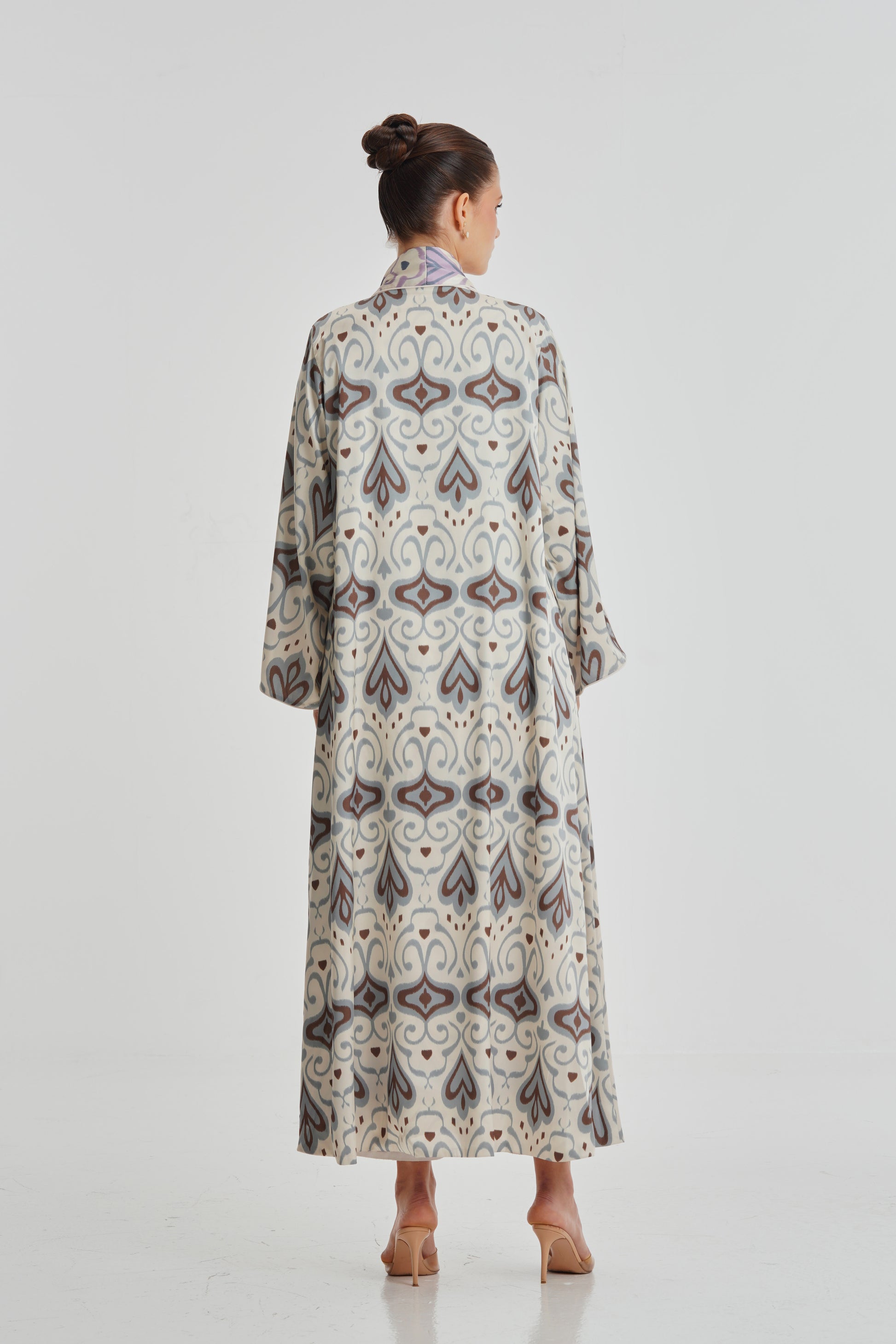 Experience the luxury of our Silk Art 38 abaya. Designed with a reversible feature, this abaya allows for versatile styling options. Made from top-quality silk fabric, it offers a one-of-a-kind print design and ultimate comfort. Elevate your wardrobe with this elegant piece.