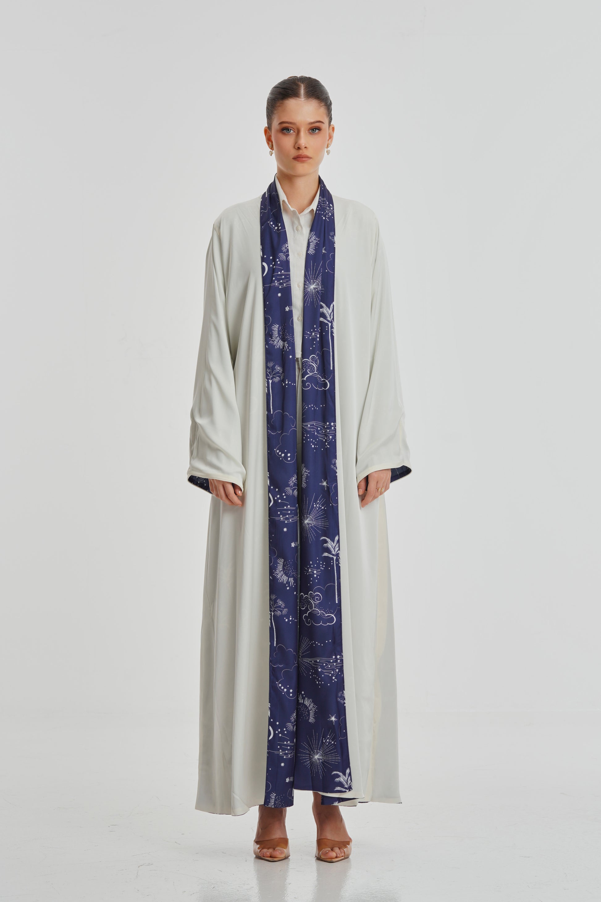 Experience the luxury of our Silk Art 5 abaya. Designed with a reversible feature, this abaya allows for versatile styling options. Made from top-quality silk fabric, it offers a one-of-a-kind print design and ultimate comfort. Elevate your wardrobe with this elegant piece.